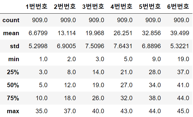 df_only_number=pd.DataFrame([df['1번번호'], df['2번번호'], df['3번번호'], df['4번번호'], df['5번번호'], df['6번번호']]).T