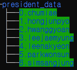 내 데이타는 아래 그림과 같이 president_data 폴더 밑에 7개의 폴더를 만들고, 그 폴더엔 각각 대선주자(추미애, 홍준표, 황교안, 이재명, 이낙연, 박원순, 심상정) 사진이 들어있다.