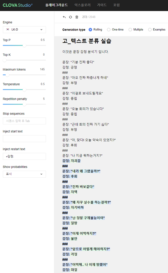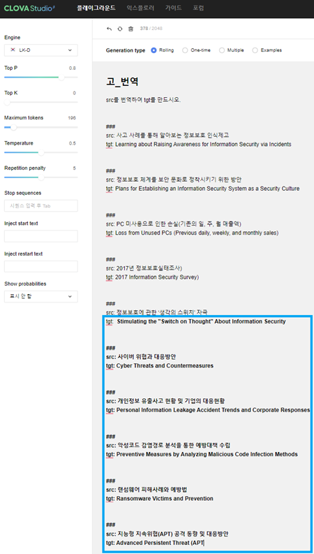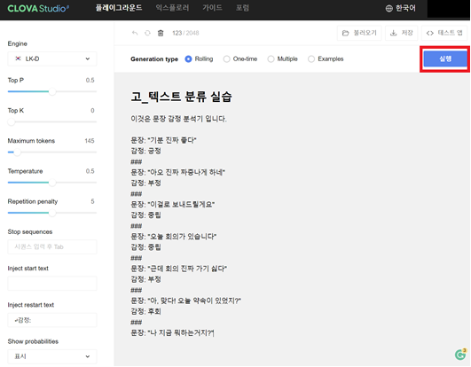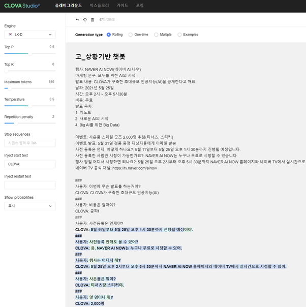 - Demo site: https://clovastudio.ncloud.com/playground/