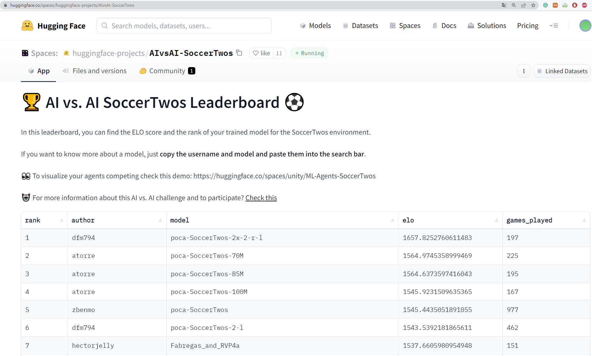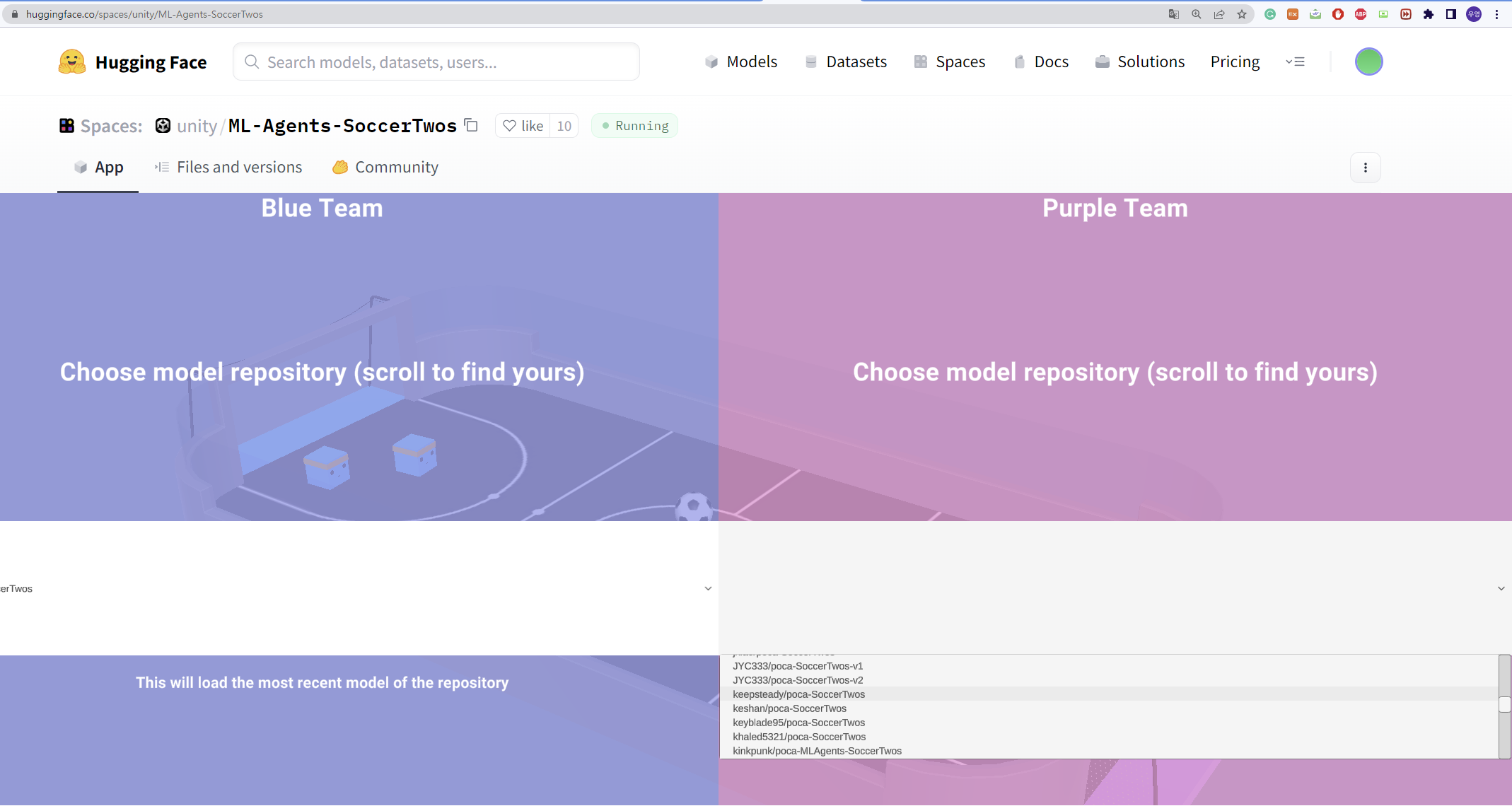- 내 huggingface 저장 hub에 'ML-Agents-SoccerTwos' tag가 붙어있어야 한다