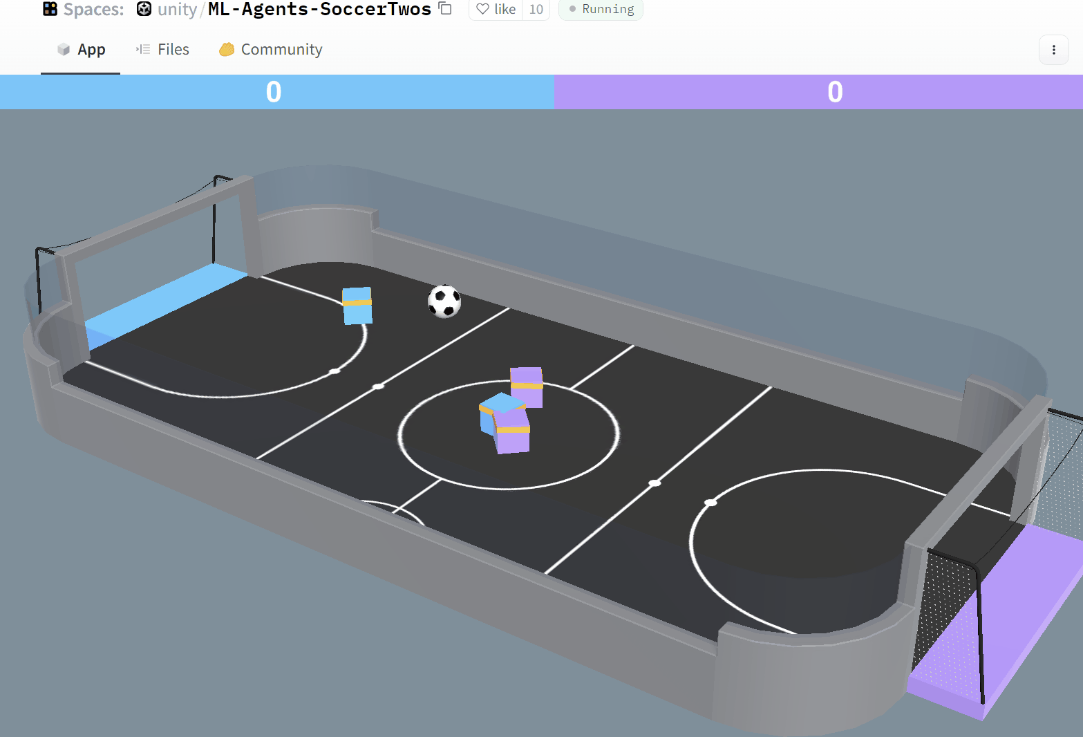 Unity에서 2대 2 로봇축구를 Multi-agent 강화학습을 통해 서로 대결하며 학습하는 POCA 강화학습 기법을 사용하여 학습했습니다. 윈도우에서도 실행 가능하고 웹에서 바로 다른 참가자 모델과 경기가 가능합니다.